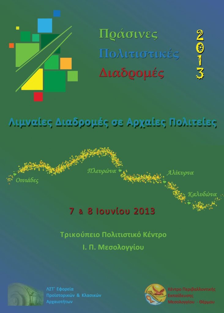 Η ΛΣΤ΄ Εφορεία Προϊστορικών και Κλασικών Αρχαιοτήτων και το Κέντρο Περιβαλλοντικής Εκπαίδευσης Μεσολογγίου–Θέρμου στο πλαίσιο δράσης του Υπουργείου Παιδείας «ΠΡΑΣΙΝΕΣ ΠΟΛΙΤΙΣΤΙΚΕΣ ΔΙΑΔΡΟΜΕΣ» διοργανώνουν διημερίδα με θέμα: «Μεσολόγγι: Λιμναίες Διαδρομές σε αρχαίες πολιτείες».