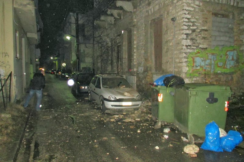 Κατέρευσε πριν από λίγο στο Μεσολόγγι, ο επάνω όροφος του αρχοντικού Μαλακάση, προξενώντας ζημιές σε παρκαρισμένα αυτοκίνητα, αφού το κτήριο ήταν πέτρινο.
