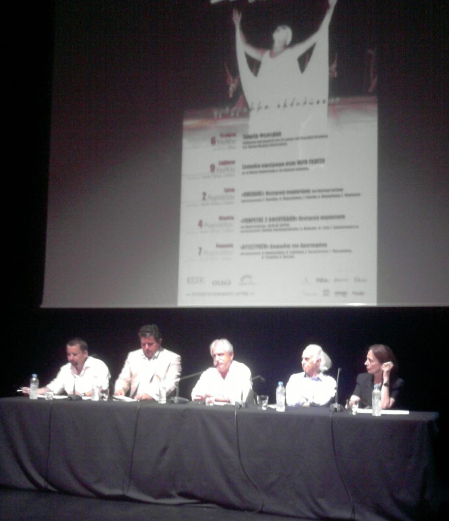 Στην εκδήλωση της Αθήνας στην συνέντευξη εισηγήσεις έγινα από τους: Σταύρο Μπένο, Πρόεδρο του Σωματείου για την προστασία και ανάδειξη των Αρχαίων Θεάτρων ”Διάζωμα”, Παναγιώτη Κοντό, πρ. Γενικό Γραμματέα του Πανεπιστημίου Αθηνών, Ελισάβετ Σερπετή, Αρχαιολόγο και υπεύθυνη ανασκαφής του Αρχαίου Θεάτρου Οινιάδων και το Δήμαρχο Ιεράς Πόλεως Μεσολογγίου Παναγιώτη Κατσούλη. Το Συντονισμό της όλης εκδήλωσης είχε ο δημοσιογράφος Δημήτρης Στρουμπάκος.