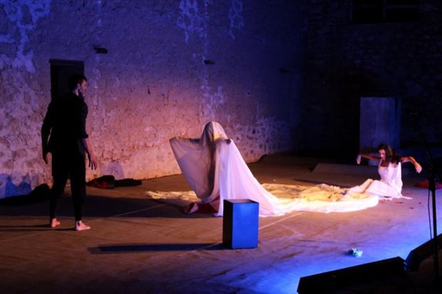 | Σκηνή από τη θεατρική παράσταση «Ο Κρητικός (Υμνος εις τον Ερωτα)» του Διονυσίου Σολωμού (σκηνοθεσία Μάριος Ιορδάνου, διασκευή Σοφία Καζαντζιάν). |