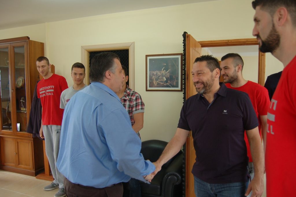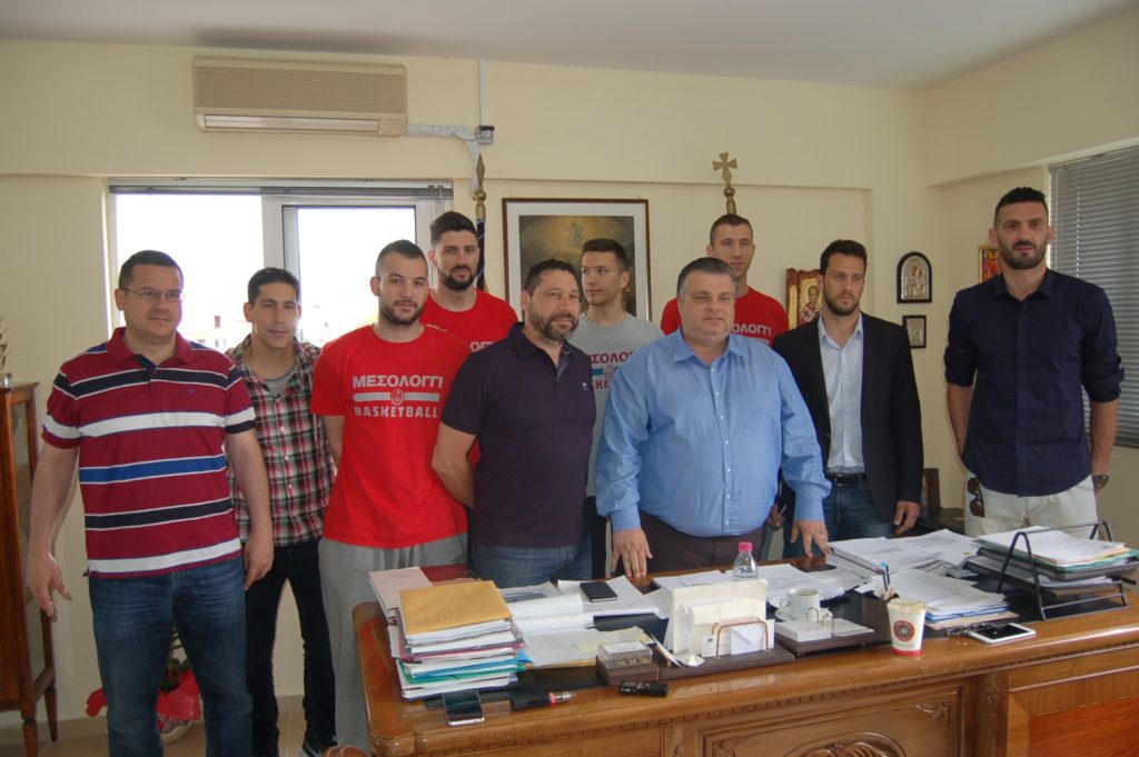 Τον πρόεδρο Δημήτρη Ρεπάσο, τον προπονητή Παναγιώτη Ζωντό και τους παίκτες της ομάδας μπάσκετ του Μεσολογγίου «Χαρίλαος Τρικούπης», υποδέχθηκε σήμερα στο γραφείο του ο δήμαρχος Μεσολογγίου, Νίκος Καραπάνος, απευθύνοντας συγχαρητήρια σε όλους για την μεγάλη επιτυχία της ανόδου στην Β’ Εθνική κατηγορία, μετά τον νικηφόρο αγώνα της περασμένης Κυριακής.