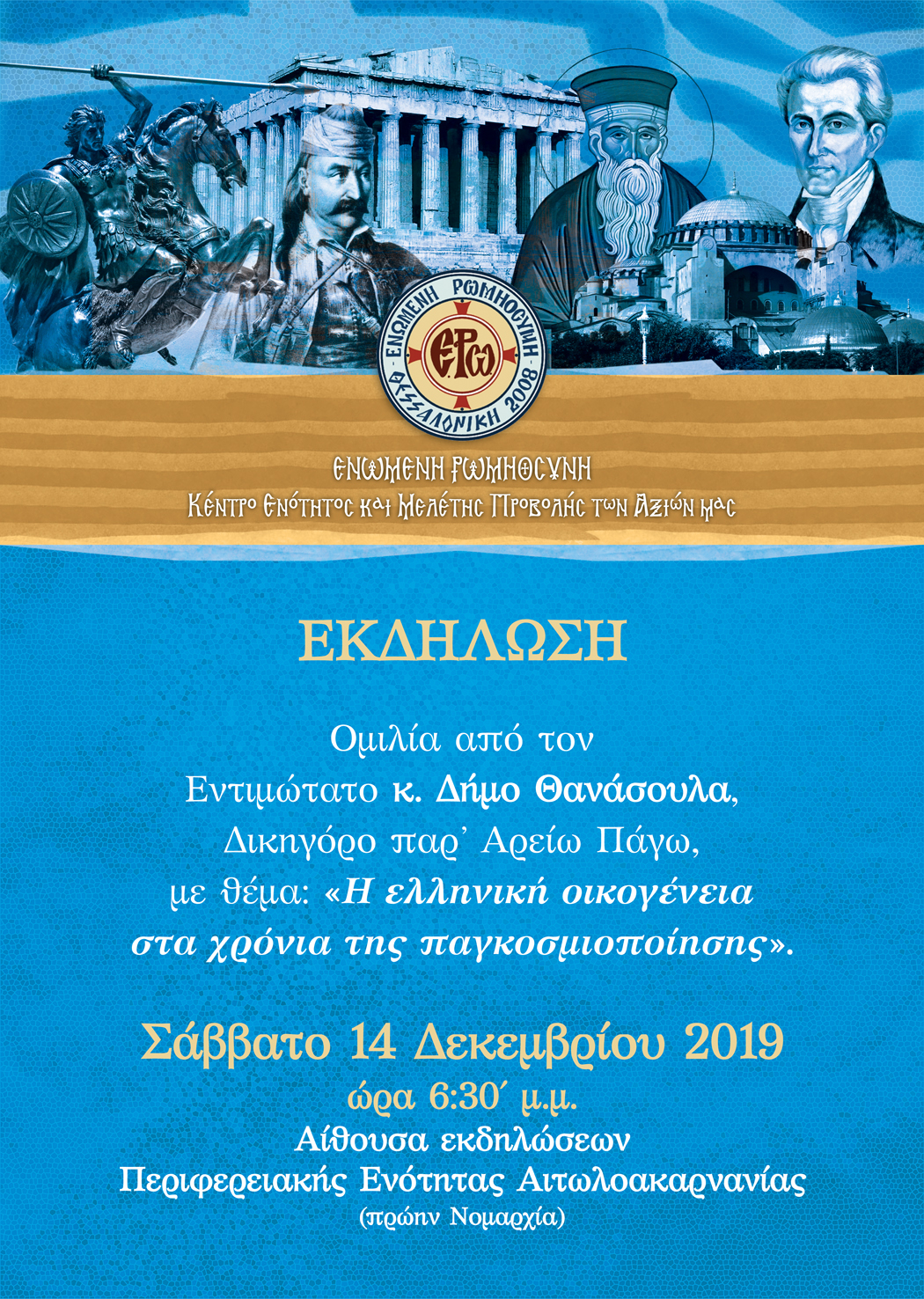 θα πραγματοποιηθεί το Σάββατο 14 Δεκεμβρίου 2019 και ώρα 6.30 μ.μ.