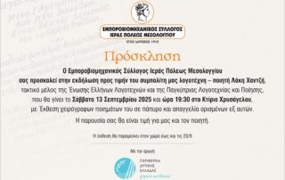 Η πόλη της Αμφιλοχίας αποτέλεσε, το Σάββατο 27 Σεπτεμβρίου 2025, τον τέταρτο σταθμό της μεγάλης επετειακής Δράσης που υλοποιεί ο Σύλλογος Πανηγυριστών «Ο Άη Συμιός», με τη σύμπραξη του Ομίλου Φίλων Ιστορικού Οπλισμού και Φορεσιάς «Ο ΛΙΑΡΟΣ» και της Διεθνούς Αδελφότητας των Απογόνων των Ελεύθερων Πολιορκημένων, υπό την αιγίδα του [...]