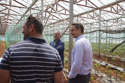 Συγκεκριμένα ο κ. Μητσοτάκης συνοδευόμενος από τον υπουργό Αγροτικής Ανάπτυξης και Τροφίμων Μάκη Βορίδη και τον υφυπουργό Κώστα Σκρέκα, επισκέφθηκε την αγροτική μονάδα του Χρήστου Ζαγάρη, ο οποίος ανακηρύχθηκε από την αγροτική εφημερίδα Agrenda αγρότης της χρονιάς για το 2019, συζήτησε μαζί του αλλά και με εργαζόμενους για τα προβλήματα του κλάδου σχετικά με την παραγωγή και τη διάθεση των προϊόντων τους στην Ελλάδα και το εξωτερικό, ενώ άκουσε τις προτάσεις τους για τις πρωτοβουλίες που θα ήθελαν να αναληφθούν από την κυβέρνηση για τη βελτίωση της παραγωγικότητας και της ανταγωνιστικότητας της εγχώριας παραγωγής στο διεθνές περιβάλλον.