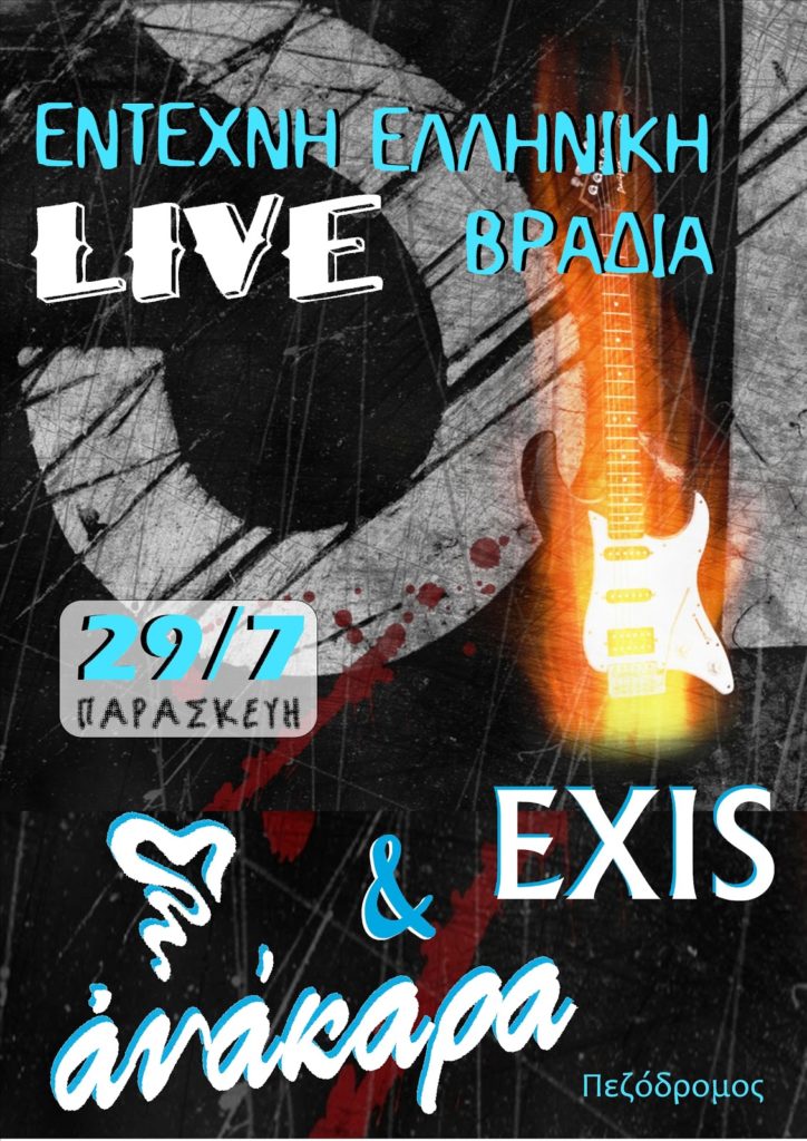 Μια ακόμη live μουσική παράσταση με τραγούδια από το έντεχνο ελληνικό τραγούδι διοργανώνεται την Παρασκευή 29/7 από τις 9:30 το βράδυ και μετά, στον πεζόδρομο της Μ. Μακρή στο ιστορικό κέντρο του Μεσολογγίου από τα café «Ανάκαρα» και «Έξις».