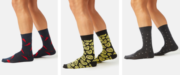 Και ενώ οι μονόχρωμες ανδρικές κάλτσες με λάστιχο παραμένουν μια κλασική επιλογή, προσφέροντας μια κομψή και διαχρονική εμφάνιση για πιο classy ντύσιμο, οι ανδρικές κάλτσες  με σχέδια βάζουν μία παιχνιδιάρικη πινελιά σε κάθε casual λουκ σας.