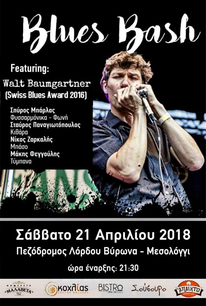 Η rhythm and blues μπάντα “Blues Bash” (Σπύρος Μπάρλας – φυσαρμόνικα, φωνή, Σταύρος Παναγιωτόπουλος – κιθάρες, Μάκης Φεγγούλης – τύμπανα, Νίκος Ζαρκαλής – ηλεκτρικό μπάσο)
