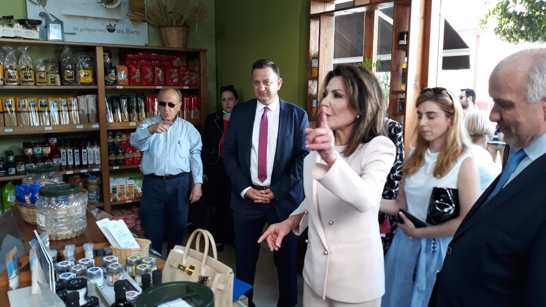 Κατόπιν περπάτησε για λίγο στους δρόμους της πόλης έχοντας την ευκαιρία να γνωρίσει και να αγοράσει τοπικά προϊόντα σε «στάσεις» που έκανε στο «μπακάλικο της Βίκυς» και στην ποτοποιία «ΤΡΙΚΕΝΕ», που ως γνωστό αποτελεί ίσως την μακροβιότερη επιχείρηση της πόλης καθώς λειτουργεί αδιάλειπτα από το 1901!