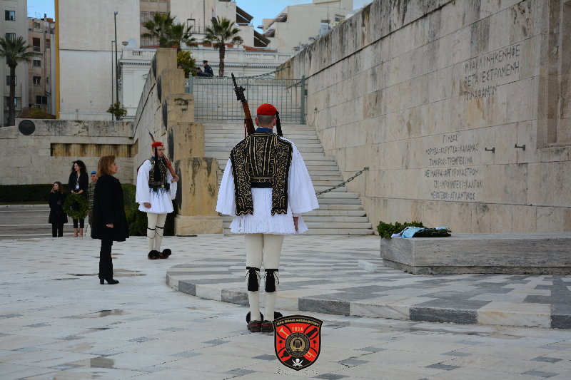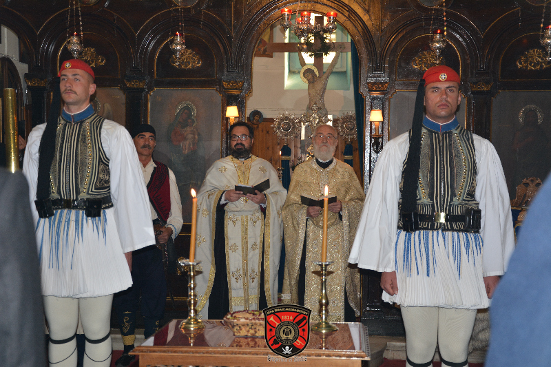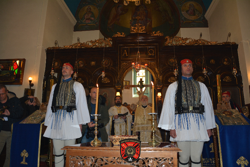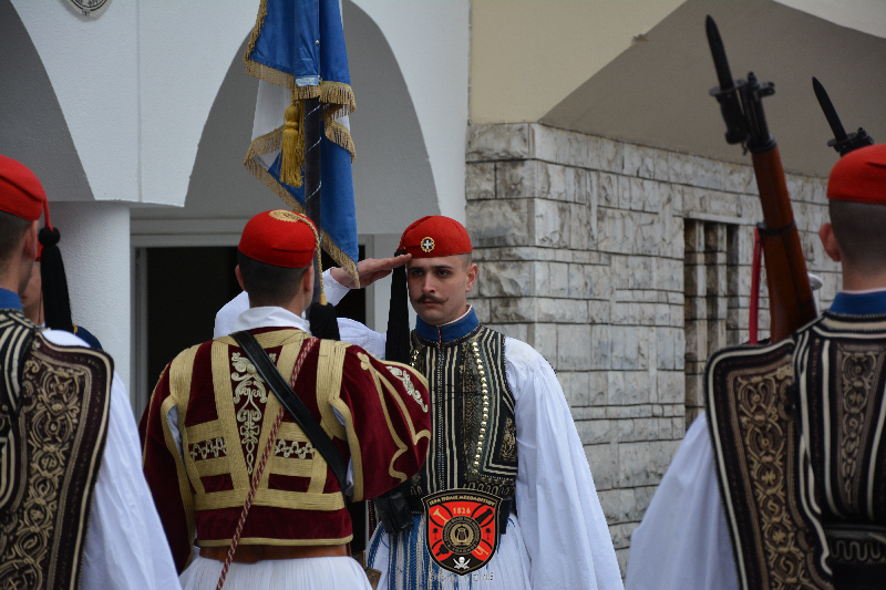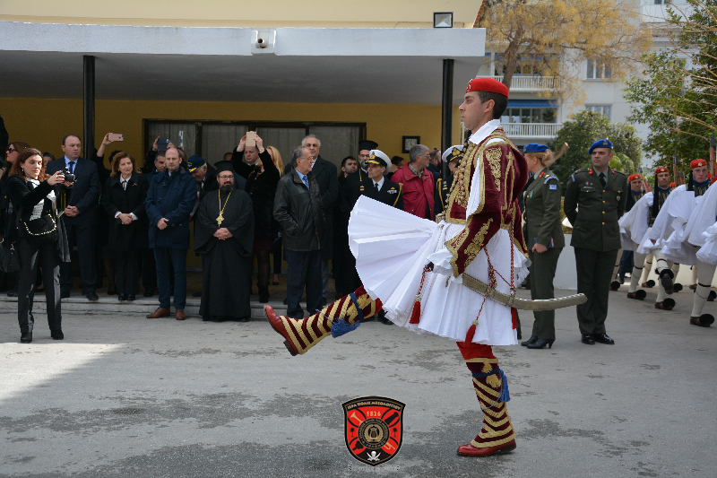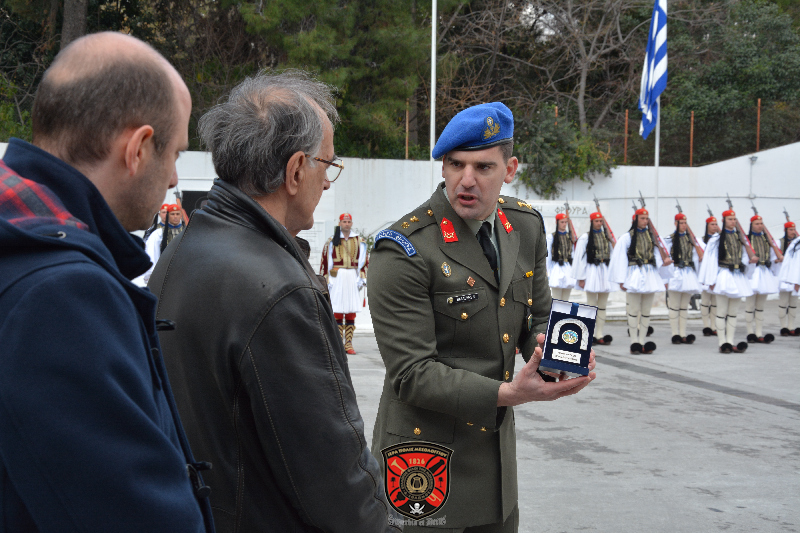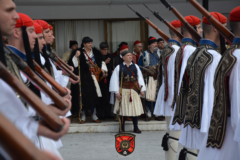 Ο ενθουσιασμός και η συγκίνηση ήταν πρωτόγνωρη για όλους τους συμμετέχοντες, αφού η υποδοχή και η θερμή φιλοξενία των Ευζώνων δεν εκδηλώθηκε απλά με τον στρατιωτικό χαιρετισμό τους καθώς περνούσε η Μπάντα και οι Σημαίες του Αγήματος αλλά κορυφώθηκε με τελετή στην οποία, εκ μέρους της διοίκησης της Προεδρικής Φρουράς, ο Ταγματάρχης Νικόλαος Βαβλέκης καλωσόρισε τον Ιερό Λόχο και τους συλλόγους που συμμετείχαν, επιδίδοντας ένα μοναδικό αναμνηστικό δώρο, εξάρτημα της ενδυμασίας των Ευζώνων.