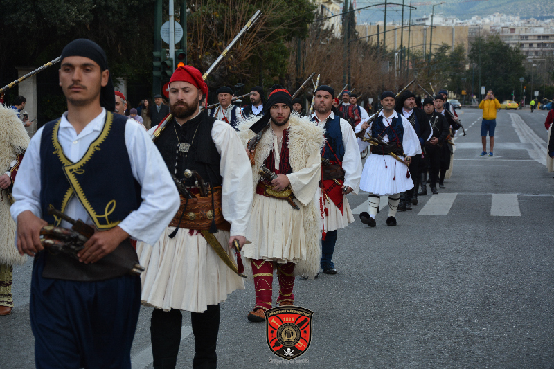 Το τεράστιο Άγημα αρματωμένων, ίσως το μεγαλύτερο ενιαίο άγημα αναβιωτών μέχρι σήμερα, παρέλασε με την Μπάντα του Ιερού Λόχου διανύοντας την οδό Ηρώδου του Αττικού, διήλθε εμπρός από το Προεδρικό Μέγαρο και το Μέγαρο Μαξίμου και εισήλθε παιανίζοντας στο στρατόπεδο της Προεδρικής Φρουράς. Εξ όσων γνωρίζουμε, για πρώτη φορά στην ιστορία της η Προεδρική Φρουρά υποδέχτηκε στους χώρους της Άγημα και Μπάντα πολιτών.
