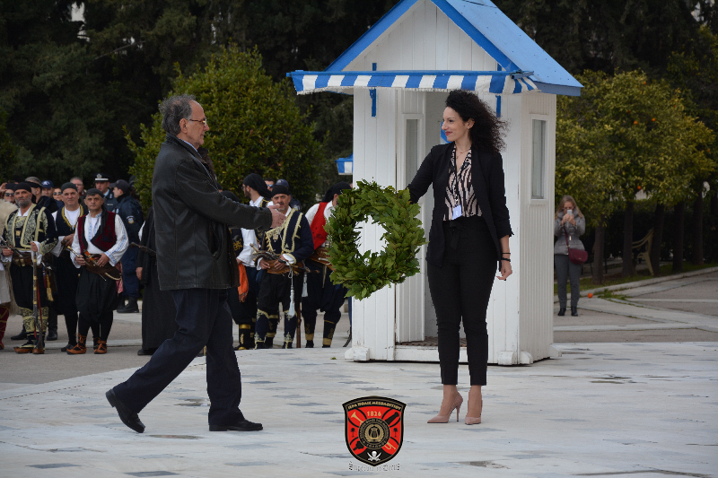 Στη συνέχεια η Μπάντα του «Δ. Σολωμού» μέσα στο Στρατόπεδο παιάνισε την Μπαντονάδα, το ιστορικό εμβατήριο των Ελεύθερων Πολιορκημένων και η παρέλαση συνεχίστηκε μέχρι το μνημείο του Άγνωστου Στρατιώτη όπου κατατέθηκαν στεφάνια κι ανακρούστηκε ο Εθνικός Ύμνος.