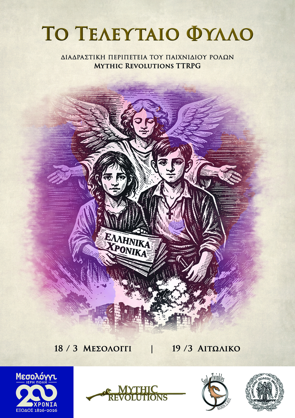 Μια ξεχωριστή βιωματική δράση με τίτλο «Το Τελευταίο Φύλλο» διοργανώνει ο Δήμος Ιεράς Πόλεως Μεσολογγίου, προσκαλώντας πολίτες, μαθητές και εκπαιδευτικούς να συμμετάσχουν σε μια διαδραστική περιπέτεια παιχνιδιού ρόλων, εμπνευσμένη από τα γεγονότα της ηρωικής Εξόδου. Πρόκειται για μια πρωτότυπη δράση ιστορικής αναβίωσης και συμμετοχικής μάθησης, μέσα από την οποία οι [...]